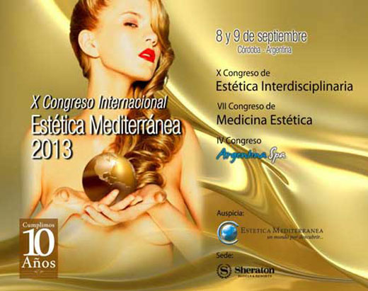 El Congreso Científico Internacional “Estética Mediterránea 2013” se desarrollará, por décimo año consecutivo, en la ciudad de Córdoba, Argentina, los días 8 y 9 de septiembre de 2013. El evento es visitado por médicos y empresarios del sector estético, médico-estético y Spa, procedentes de distintos puntos del continente.